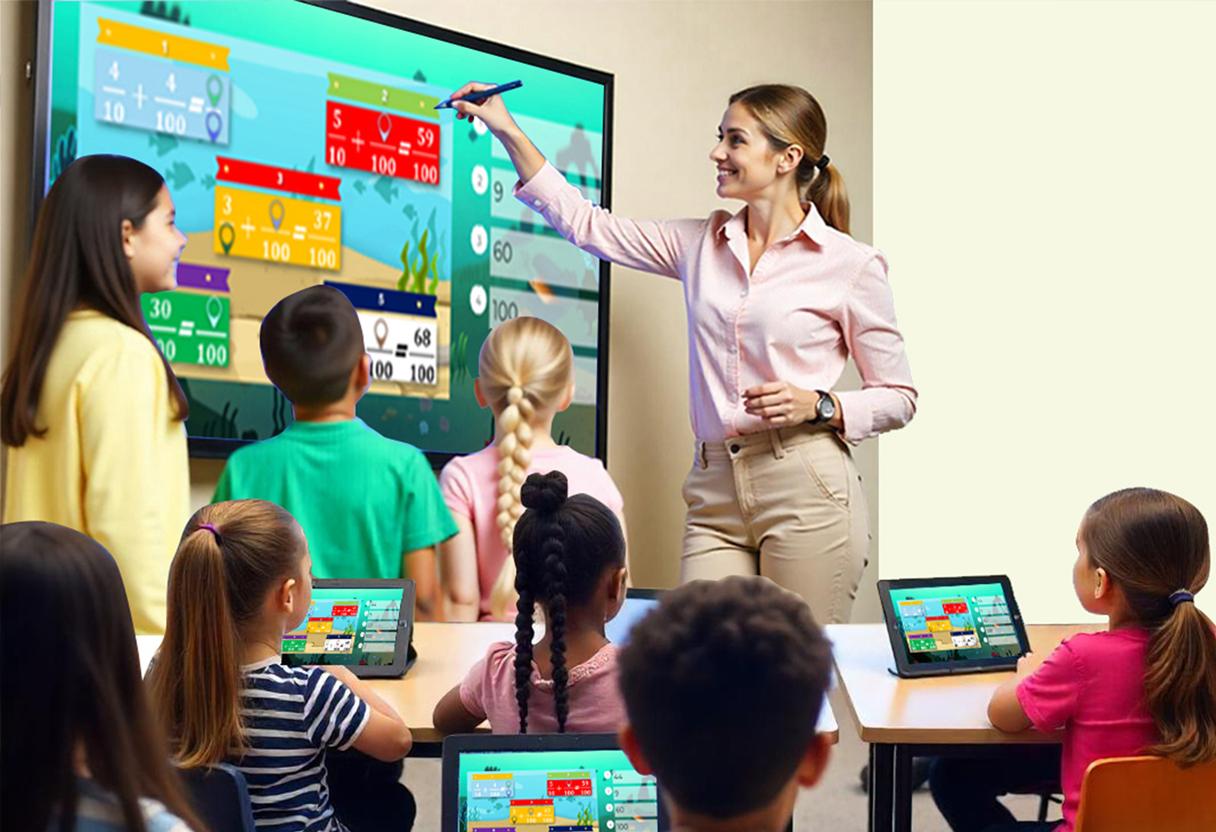 Whiteboard, projector, computer, camera, touchscreen tablet, speaker, microphone, and interactive teaching software An all-in-one education solution for smart classroom.