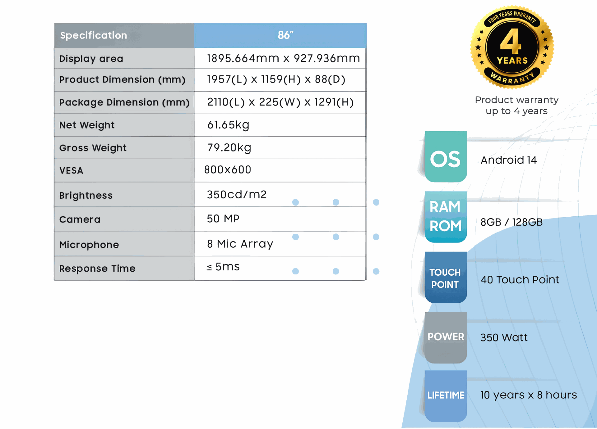 Equipped with Eye-Care Protection features to safeguard your students' eyes.